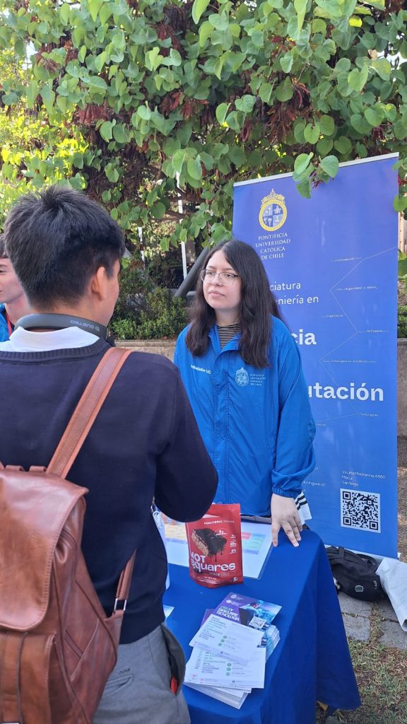 Nuestra carrera estuvo presente en la actividad, donde dos embajadoras de la Licenciatura representaron a Ingeniería en Ciencia de la Computación UC. Durante la jornada, respondieron las consultas de las y los estudiantes interesados en la computación y en nuestra carrera como una opción para continuar ampliando sus conocimientos y avanzar en su desarrollo profesional.