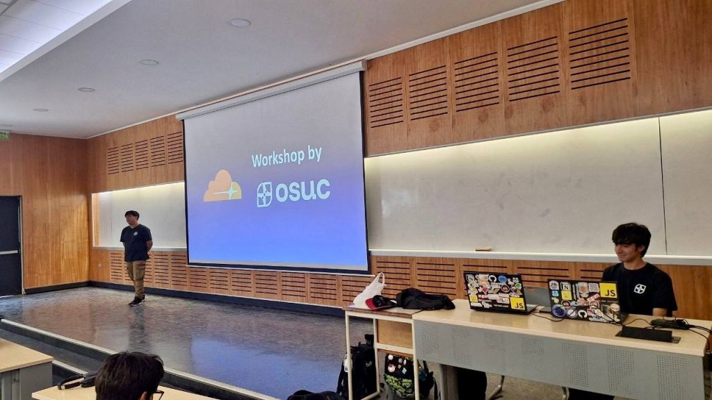 Posteriormente, OSUC realizó una charla sobre cómo hacer un deploy en Cloudflare, orientada a quienes no supieran cómo hostear su aplicación web, lo cual es un requisito para la evaluación del desarrollo.