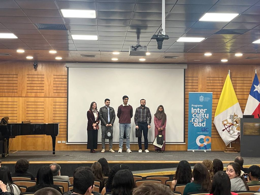 En el marco del Mes de la Interculturalidad UC, el pasado 21 de octubre se llevó a cabo el evento “Día de la Interculturalidad UC: Infancia, Juventud y Migración”, organizado por el Programa Interculturalidad UC y la Dirección de Formación Global de la Vicerrectoría de Asuntos Internacionales. La jornada tuvo como propósito reconocer la importancia de la interculturalidad dentro del ámbito universitario, destacando este año la migración y su aporte fundamental en la construcción de una comunidad más diversa e inclusiva. Durante el mes se desarrollaron diversas actividades que promovieron el encuentro y el reconocimiento entre culturas. Una de las más destacadas fue la feria gastronómica “La Vuelta al Mundo en tu Paladar”, instancia en la que distintos países y culturas compartieron sus sabores, historias, identidades, memorias y afectos a través de la comida. En esta actividad, el primer lugar fue otorgado al stand que representó a Pakistán, integrado por el estudiante de segundo año de la Licenciatura en Ingeniería en Ciencia de la Computación, Choudhry Mustafain Cheema, junto a tres estudiantes pakistaníes. La Vicerrectora de Asuntos Internacionales, Maria Montt Strabucchi, fue quien hizo entrega del premio, reconociendo el valioso aporte de los estudiantes a la promoción de la diversidad cultural dentro de la comunidad UC. El grupo presentó dos preparaciones típicas de su país: Gulab Jamun, un dulce elaborado con masa de khoya y maida, frita en pequeñas bolitas, y Biryani, un tradicional plato de arroz especiado con basmati, carne o vegetales y yogur. “Conocer a otra gente de Pakistán fue muy enriquecedor, porque pensé que no había nadie de mi país acá. Pasé mucho tiempo buscando personas de Pakistán o incluso de India y Afganistán, porque compartimos cultura. De alguna forma, sentí que parte de mi identidad volvió”, comentó Musta, como le dicen de cariño sus amigos. Él llegó a Chile a los 12 años, estableciéndose con su familia en Iquique, donde mantuvo viva su identidad pakistaní. Sin embargo, al trasladarse a Santiago en 2023, sintió cierta desconexión con sus raíces. “El stand me permitió reencontrarme con mi identidad, conocí gente muy bacán, y cuando empezamos a trabajar tuvimos que decidir qué platos preparar. Fue un trabajo difícil, pero queríamos hacerlo bien”, agregó. En cuanto a su experiencia en la Licenciatura en Ingeniería en Ciencia de la Computación, Choudhry Mustafain Cheema destaca que es un espacio muy unido, donde también hay personas de otras culturas, y se generan instancias para crear vínculos cercanos con las distintas personas que forman parte de la carrera.